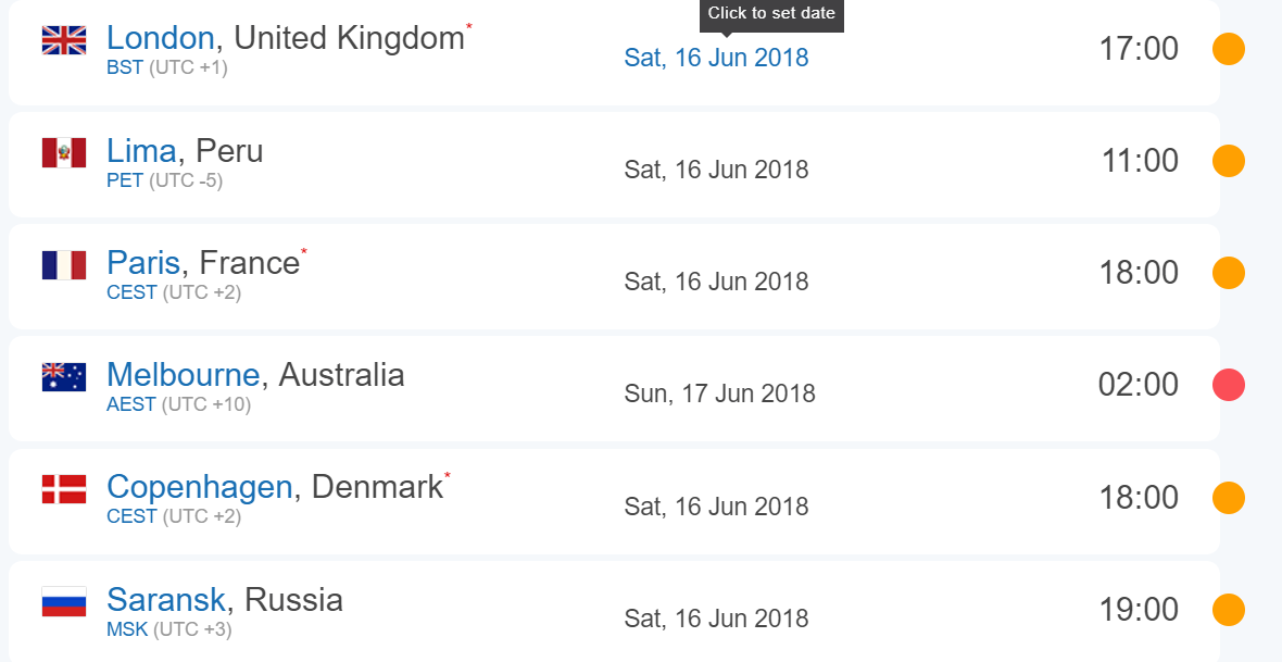 Melbourne: Sun, 17 Jun 02:00 AEST (UTC +10)